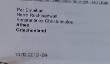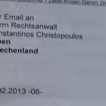 Der Anwalt hat einen partnerschaftlichen Kontakt in Griechenland und diesen bat er schriftlich um eine Kontaktaufnahme mit unserem griechischen Rechtsanwalt V.G. und anschließender Zusammenarbeit.