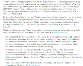 Eine Freundin aus Griechenland schrieb stellvertretend für die Freunde der Susan: