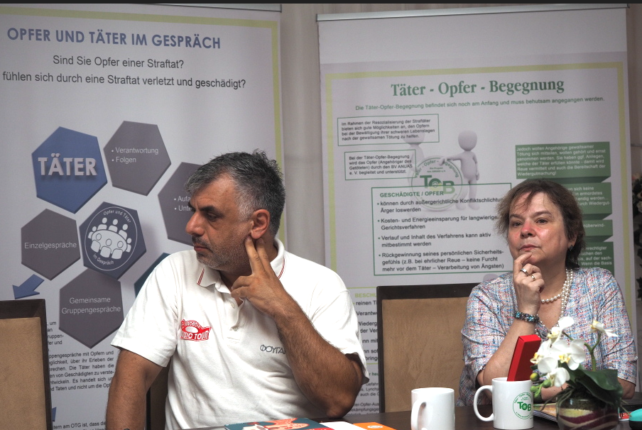 Unser griechischer Anwalt V.G. kannte die Vorgeschichte und berichtete uns, dass es in Griechenland ähnlich aussieht. Er hat ja 2015 einen eigenständigen Verein "ANUAS-Hellas" gegründet und bemüht sich intensiv um Opferrechte in der Politik und Gesellschaft. Nachdem die EU-Richtlinie für den Mindeststandard für Gewaltopfer herauskam, passierte in Griechenland nicht viel. Er bemüht sich intensiv, wird aber regelmäßig abgeblockt. Er hat den Eindruck, dass zu dem Zeitpunkt die Richtlinie nicht in nationales Recht umgesetzt wurde. --- Also, wie in Deutschland auch!